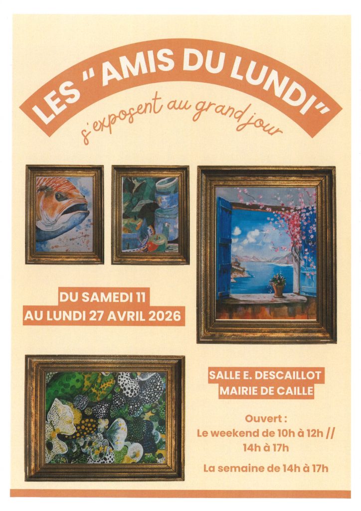 LES « AMIS DU LUNDI » s’exposent au grand jour du 11 au 27 avril 2026 Salle Eugène DescaillotPar mairiecaille / 10 avril 2026